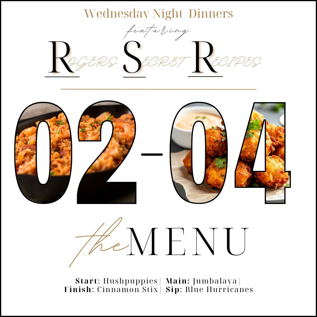 Every Wednesday night features select recipes straight from the family cookbook of our owners, Justin and Betsy Rogers. Each week they will show off a new meal to our patrons and their guests. Click below to view this week's menu and a preview of future offerings