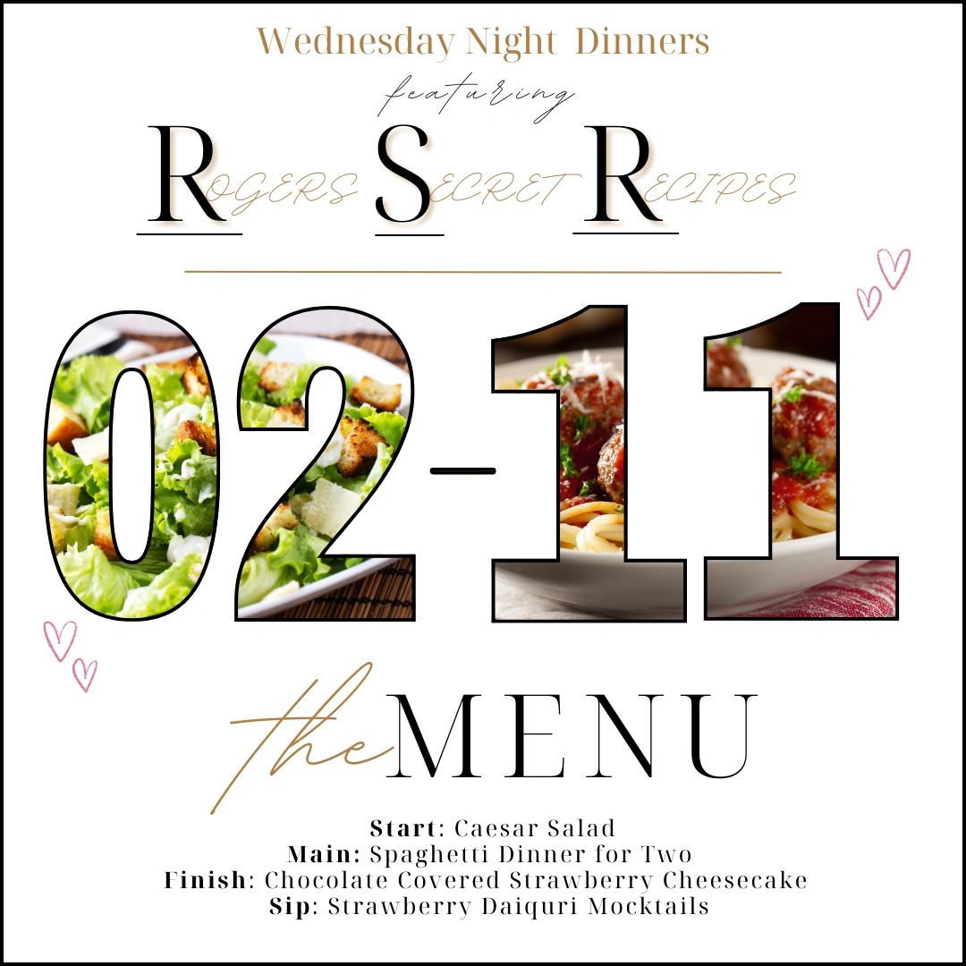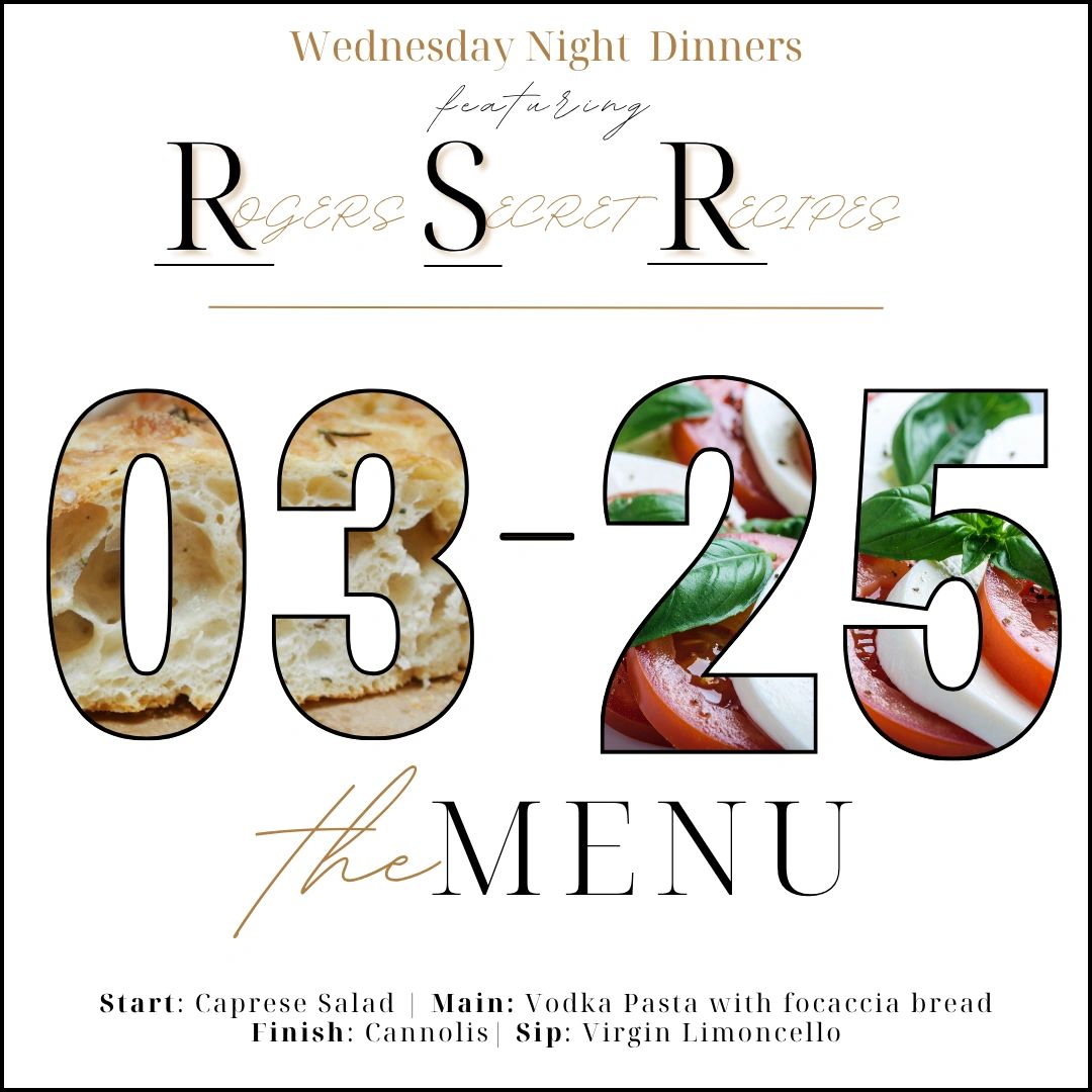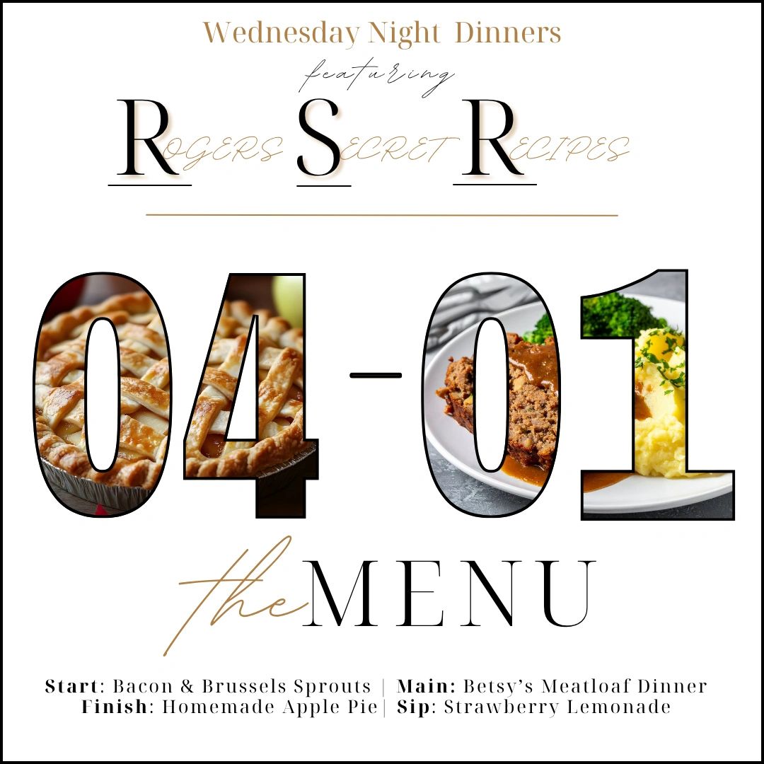 Every Wednesday night features select recipes straight from the family cookbook of our owners, Justin and Betsy Rogers. Each week they will show off a new meal to our patrons and their guests. Click below to view this week's menu and a preview of future offerings