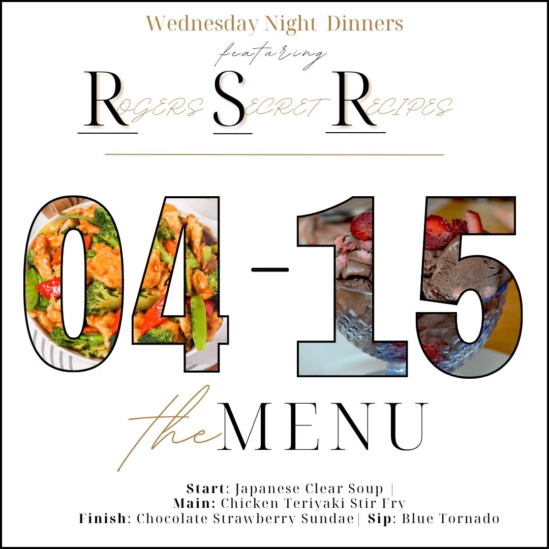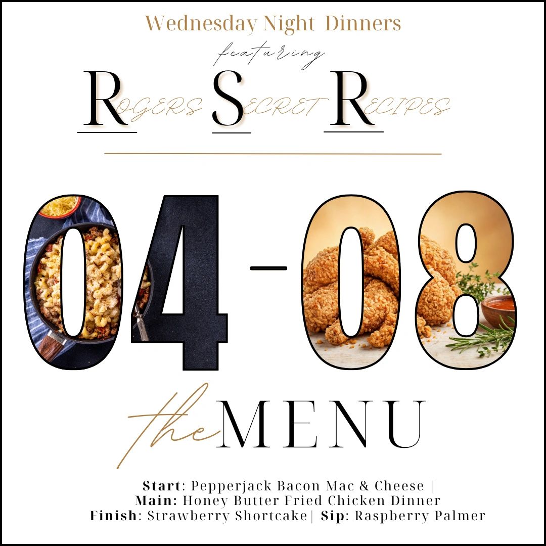 Every Wednesday night features select recipes straight from the family cookbook of our owners, Justin and Betsy Rogers. Each week they will show off a new meal to our patrons and their guests. Click below to view this week's menu and a preview of future offerings